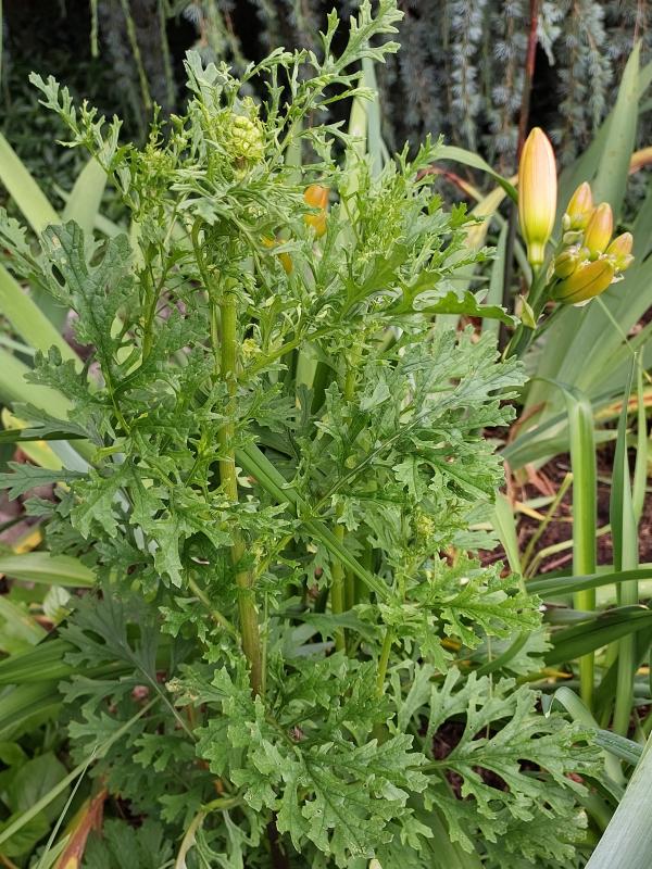 Fast aus dem Nichts ist diese Pflanze aufgetaucht. Was ist das? Unkraut? Behindert die Hemerocallis.