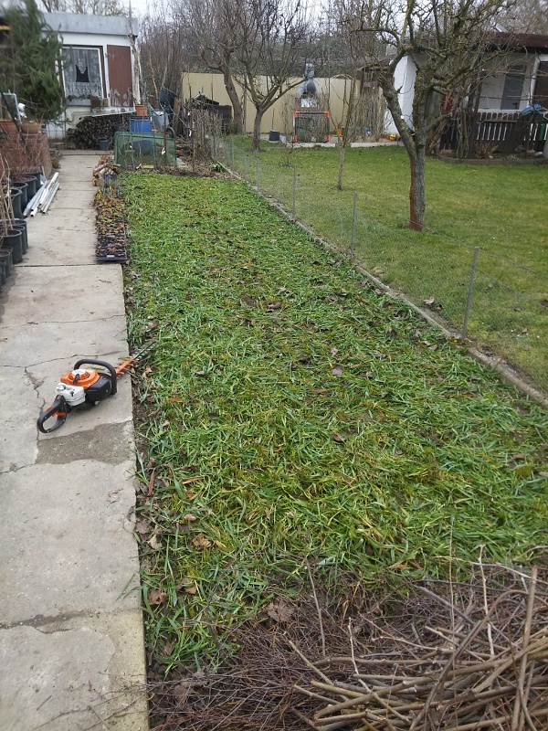 Sandhafer Ende Januar, frisch zerkleinert zum einarbeiten. Hilft auch gegen Schnecken (die passende Bodenbearbeitung).