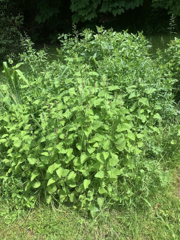 An einer einjährigen gemähten Fläche wird der Waldziest ziemlich dominant und setzt sich gegen Wiesenknopf blutweiderich und Dost durch