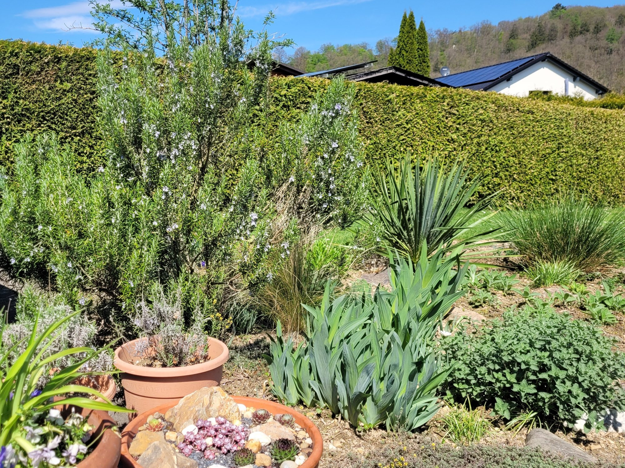 Hier blüht der Rosmarin, endlich nach Jahren. Inzwischen etwa hüfthoch. :D
