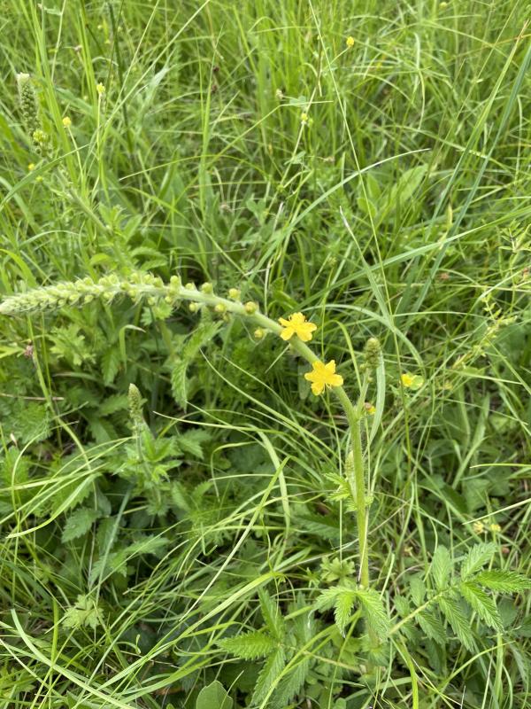 Odermennig, Agrimonia eupatoria, blüht auch schon, ich habe den immer nur im August gesehen, gar nicht schlecht mal genauer hinzusehen.
