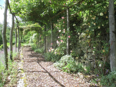 Zum Abschluss schaue ich noch einmal durch den Clematisbogen zurück.
