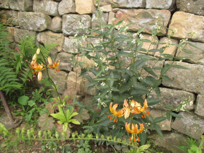 Lilium martagon 'Sunny Morning' mit Tanacetum macrophyllum und Cistus