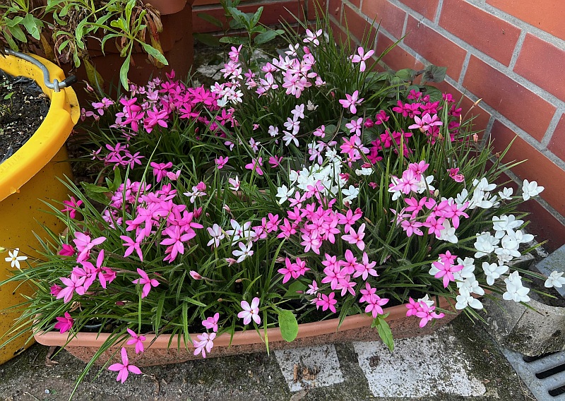 Catananche caerulea im xten Anlauf. Jetzt im Kiesstreifen an der Hauswand. volle Sonne. Lychnis coronaria jäte ich überwiegend. Die wenigem, die durchkommen, entwicklen sich meist wunderbar. Clematis 'Juuli' bleibt dauerhaft zuverlässig und kerngesund.