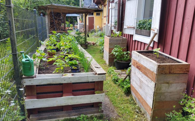 Mein Nutzgarten ist quasi dreigeteilt in Dachterrasse, "Schiefermauerbeet" und die Hochbeete am Schwedenhaus.