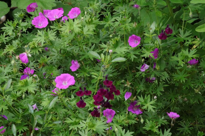 Eine liebe Gartenfreundin hatte mir letztes Jahr Salvia ´Nachtvlinder´geschenkt, die problemlos im Beet überwintert hat. Nun kämpft sie sich durch Geranium sanguineum.