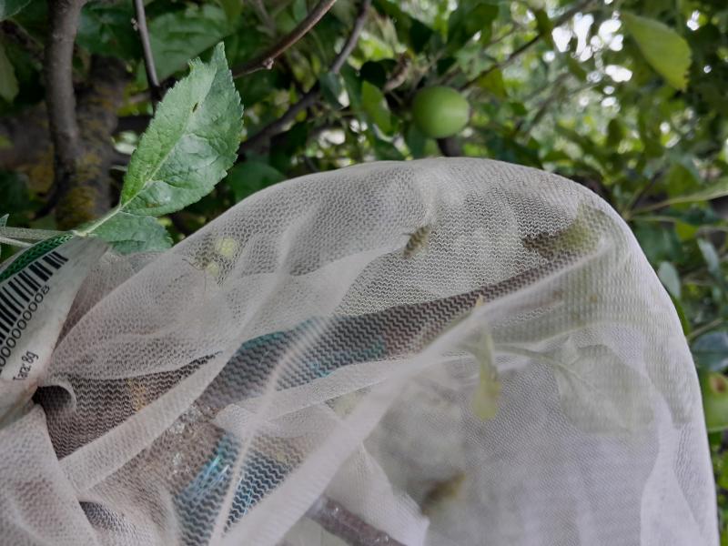 Ich hoffe dass zumindest ein Teil überlebt. Da waren mehr als 5 Wanzen im Netz heute... jetzt mit Bast fest zugebunden.