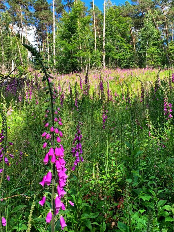Kalamitätsflächen kann schon tolle massenaspekte des Fingerhut erzeugen teilweise Hügel mit kilometerweiter fernwirkung. Dieses Jahr war das mit dem Ginster auch extrem der gelbe Meere erzeugt leider war ich zur Hauptblüte krank