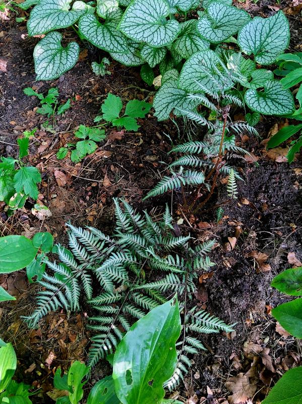 Den hat mir Wouter mal in die Hand gedrückt als Alternative zu Ocean's Fury - Athyrium iseanum Cristatum x Athyrium niponicum Purple Garden. Ich habe ihn gerade umgesetzt, damit er etwas mehr Platz hat. Am alten Standort hatten sich die Aquilegia etwas breitgemacht - und neben Jack Frost wirkt er auch viel besser :D.