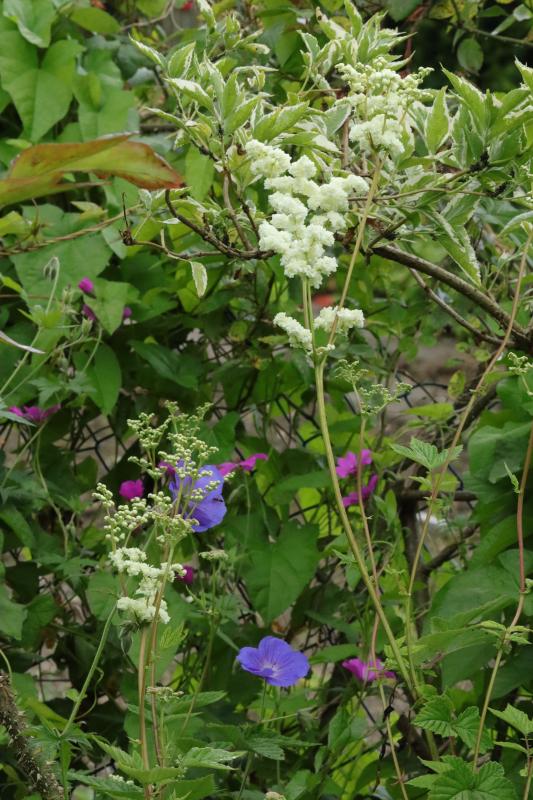Filipendula in Arten und Sorten sind dagegen völlig unbehelligt, die gefüllte Filipendula ulmaria blühte ewig nicht mehr so schön und hoch. In den trockenen Jahren sind die Blütenstängel meist durch Mehltau verkümmert.