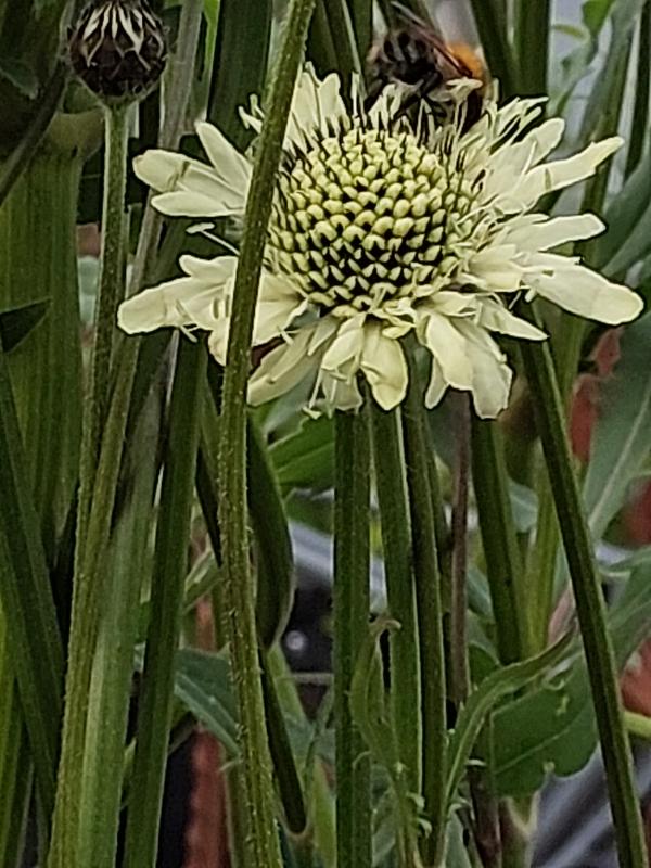 Cephalaria gigantea. Ein Riesending und immer mit Bienenbesuch.