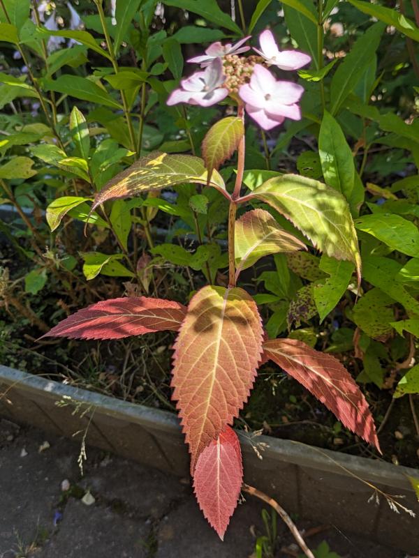 Hier ein hübscher Sämling von H.serrata 'Kiyosumi'. Blütenfarbe deutlich heller, das Blatt dafür lebhafter gefärbt. Darf auf jeden Fall bleiben!