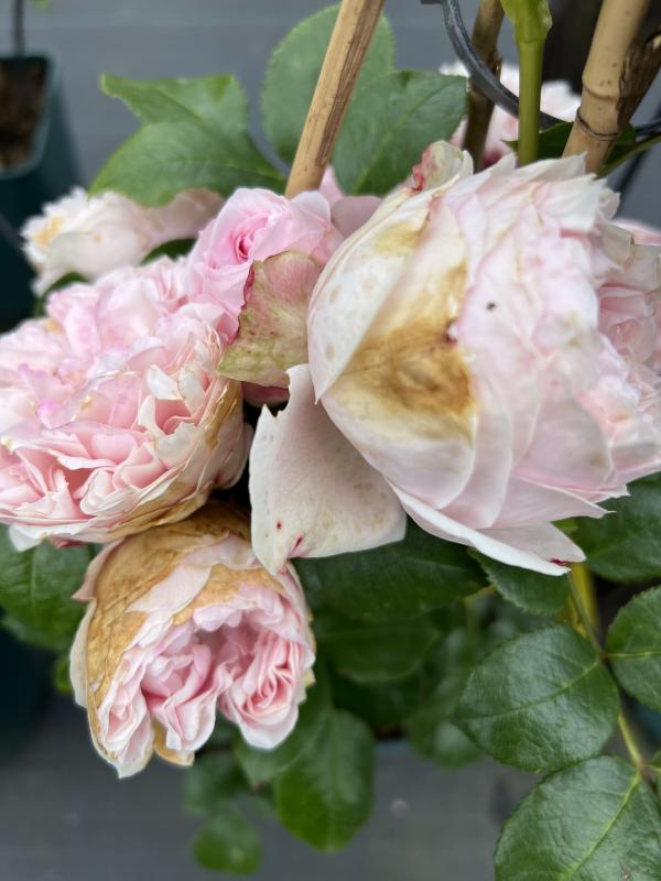 Die Blüten sahen bei der Giardina ziemlich in Mitleidenschaft gezogen aus.