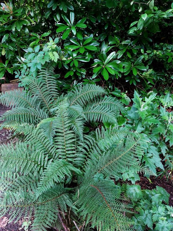 und noch einmal schönes Blatt- oder besser Wedelwerk von Dryopteris indusiata - der Rest des Schönlings ist unter allerlei Grünzeug versteckt