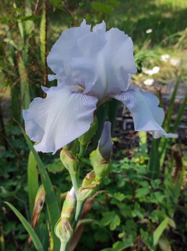 Nachdem ich jetzt Ende Juli nicht mit einer blühenden SDB gerechnet hatte, hätte ich sie fast übersehen. Das Foto ist von gestern. An dieser Stelle hatte sie im Frühling nicht geblüht, das war eher ein Ausweichquartier für überzählige Rhizome letztes Jahr.