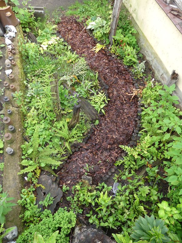 Übrigens habe ich mir nur im alten Garten so viel Mühe gegeben, den Rasen wieder zu verlegen. Im alten Garten, wo die Grassoden nun auch schon etwas länger lagen, wird der Graben einfach zugeschippt. Bei dem vorhanden Bewuchs ist das eh zügig wieder geschlossen.