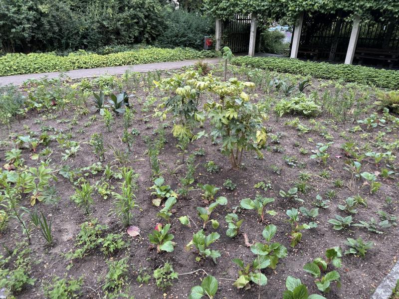 Eine einzelne Paulownia, zwei Fatsia und Choisya als Gehölze. Ansonsten habe ich gesichtet: