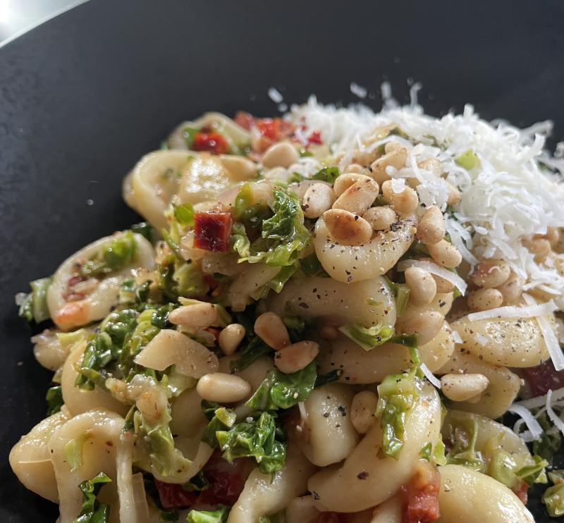 Ich hatte ehrlich gesagt schon richtig Kochentzug und habe es genossen heute wieder Orecchiette zu machen. Dazu Zwiebeln, Knoblauch, Wirsing, getrocknete Tomaten und Pinienkerne. :)