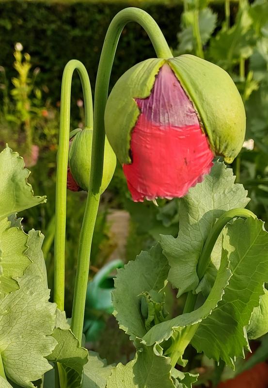 Die Mohnblüten sind so gross und schwer, dass es noch nicht einmal den Regen braucht, um sie abknicken zu lassen. Ich müsste sie eigentlich stäben.