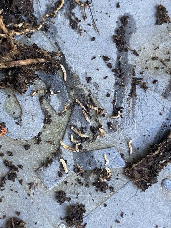 Ich habe in drei Hosta-Töpfen an den Wurzeln diese kleinen, weißen Würmer gefunden, Länge ca. 5 - 8 mm.