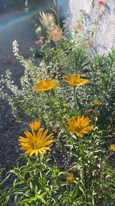 Beide können auch in Zierstaudenbeete stehen,aber ich finde das wird ihnen nicht so gerecht, da gehen sie unter in der Masse der gelben Korbblüter, im Steingarten oder anderen sonnig trockenen Standorten wird man ihrem Charme gerechter