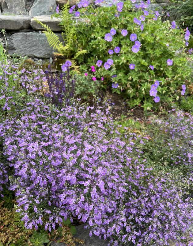Hemerocallis 'Purplelishious' & 'Stella d'Oro' mit Penstemon 'Dark Towers', dazu Alchemilla mollis und immernoch Phlomis Russeliana... :D
