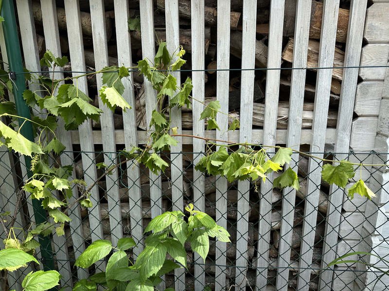 Dazwischen ist eine Yamswurzelranke. Es gibt noch mehr Sorten, rote Victoria, Lakemont, Ontario und andere. Dieses Jahr zweimal "gedüngt" mit Phosphonat-Blattdünger. Es geht mir ganz bewusst nicht um einen punktgenauen mehrmaligen optimalen Behandlungstanz, sondern um Sorten, die einen faulen Gärtner ertragen. Seit Jahren auffallend ist, dass 80% der Ost-Sorten nicht annähernd halten, was an Resistenz versprochen wird. Sehr schade. Werfe immer mehr der neueren Sorten raus weil sie nichts taugen und komme immer mehr auf ältere Sorten zurück.