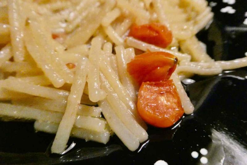 Vorspeise Shii Take-Pilze aus Bayern, mit Schalotten in Olivenöl und etwas Butter gebraten und mit weißem Balsamico abgelöscht
