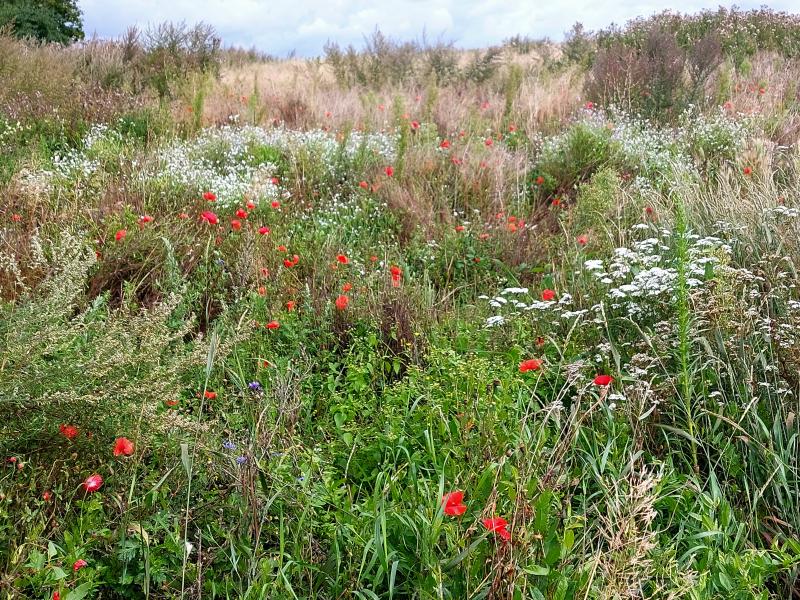 Da läßt einer vielleicht absichtlich, aus gutem Willen, vielleicht gegen Beihilfen oder aus Zeitnot/Wetter Flächen brach liegen. Das ist gut für die Natur! Ist doch was!!! :D