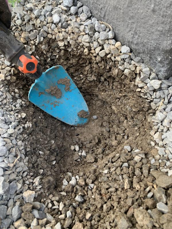 Leider ist unter der pflanzstelle Beton, vermutlich Fundament oder ähnliches. Wurzel Raum direkt daruner also nicht allzu groß , denke aber eine paar Zentimeter weiter vorne sollte das Betonteil auch enden.