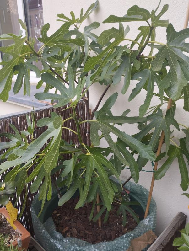 Die Panachee ist ausgepflanzt und wächst sehr stark. Letztes Jahr hatte ich um den 4. September die ersten Herbstfeigen, die war da auch schon ausgepflanzt. Negronne daneben musste diesen Winter umziehen weil sich die Panachee so breit macht. 2 Meter Abstand war definitiv zu wenig :P