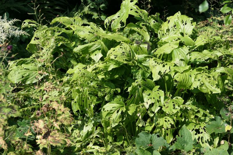 Wie macht Ihr das nur mit Euren vielen Hostas, daß sie so makellos aussehen ? Hier werden sie sogar in Kübeln, trotz Körnchen, zerfressen.