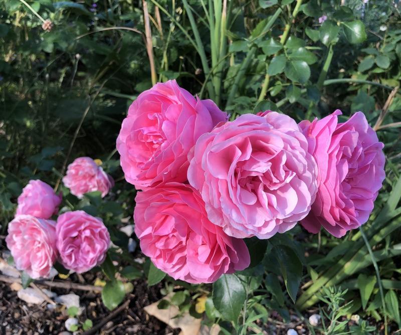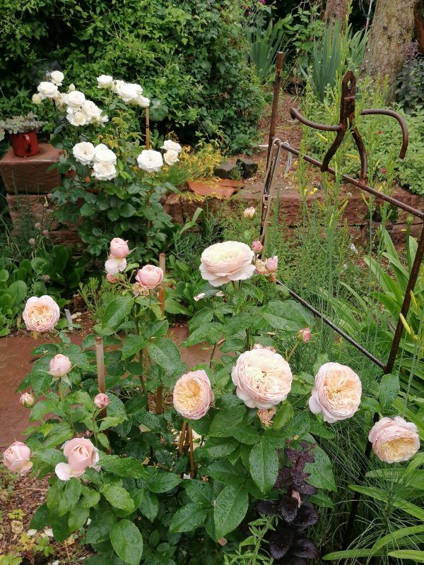 Deshalb habe ich viele ADR-Rosen. Bin begeistert von 'Domaine de Chantilly' vorne und 'Mme Anisette' hinten :D