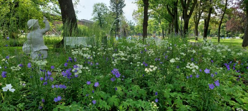 Die Staudenbeete je nach Standort und Farbkonzept unterscheiden sich. Hier eher etwas im Halbschatten, in kühleren Farben.