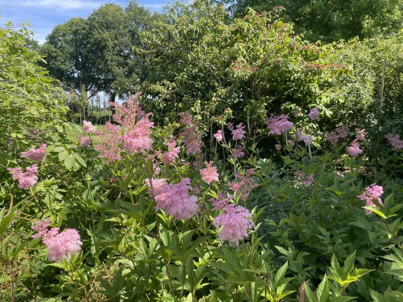 Potentilla Miss Willmott. Auch neu und ebenfalls reich blühend. Allerdings blitzen die hübschen Blütchen mal hier mal dort auf und weben sich an Ranken in die benachbarten Stauden.