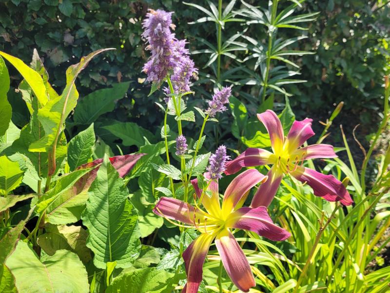 Die auffälligen Stars sind derzeit aber Hemerocallis, hier 'Kien Mill' mit Agastache foeniculum. :-*