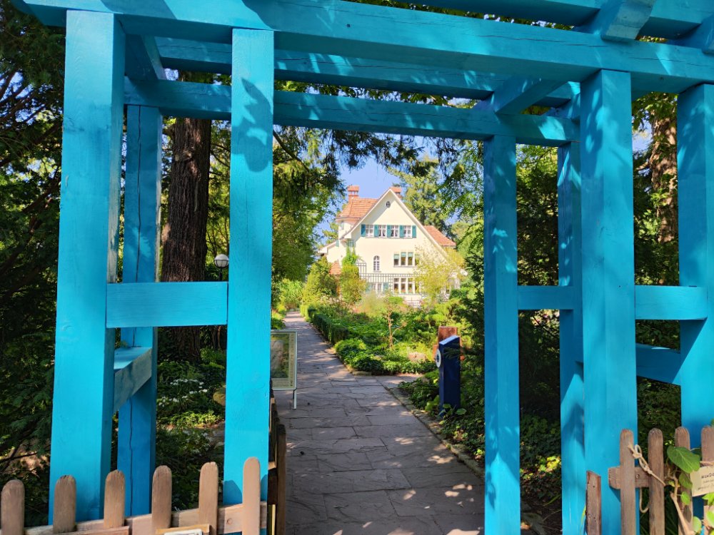 Die alte Pergola war mit Kupfersulfat behandelt, meint ein Foerster-Biograf. Im Jahr 1983 wurde bereits über den Farbanstrich diskutiert, damals mit Eva Foerster und Göritz. Jetzt hat man sich für Türkis entschieden.