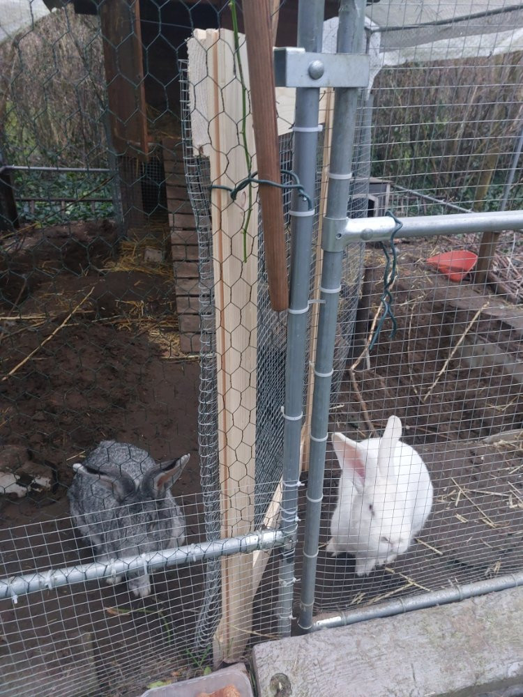 Den Sommer über habe ich immer draußen ein Kaninchen in einem provisorischen Freilauf auf die Wiese gelassen - und schön aufgepasst, dass nicht gebuddelt wird und eins im Gehege.... wat'n Aufwand...
