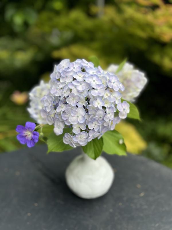 Der Garten hat mir eben Bescheid gesagt, ich möge doch bitte keine Ballhortensien, sondern Tellerhortensien pflanzen. Hier gibt es gerade massenhaft Gartenwollbienen, zumindest habe ich sie als solche bestimmt. Natürlich nicht an den Ballhortensien.