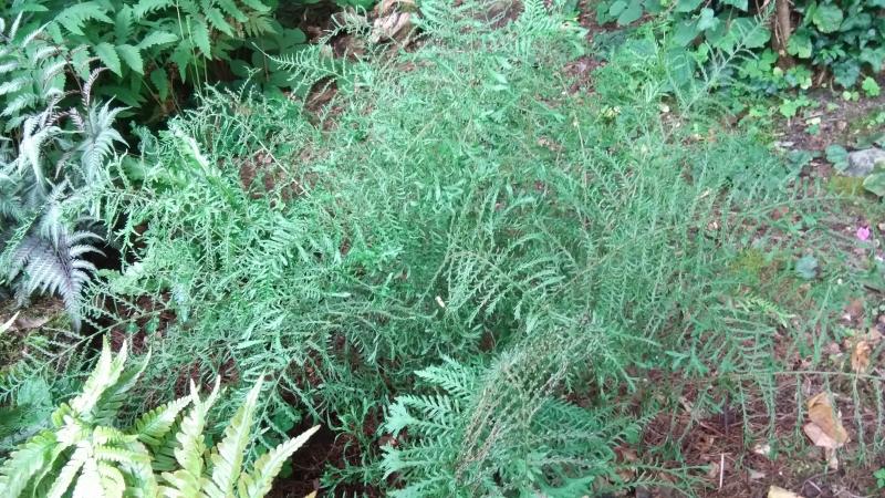 Wiki sagt, könnte ein Perlfarn sein, wächst im feuchten Waldgarten jedes Jahr über Rhizome mindestens einen halben Meter.