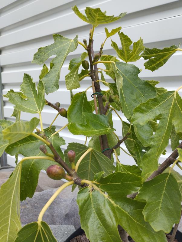 Naja sie hat lediglich 1-3 Blätter pro Ast ausgetrieben, also so gut wie kein Zuwachs dieses Jahr. Ja es sind ein paar Herbstfeigen dran, aber sie hat auch schon ein paar abgeworfen. Also überhaupt nicht wüchsig, wie die Sorte eigentlich sein sollte. Und für Ihre Größe von ca. 1,50m sind die 5 Feigen die noch dran sind wirklich nicht viel. Ich befürchte das es diese auch nicht schaffen.