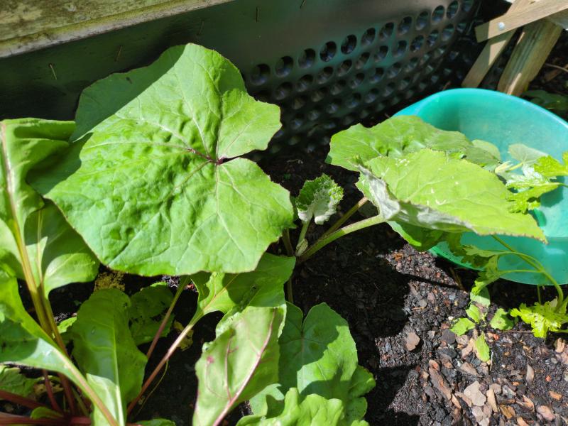 In einem meiner Gemüsebeete ist etwas aufgegangen, dass ich erst für eine Kalebasse gehalten habe, aber das kann ich jetzt ganz klar ausschließen. Es ist ein Bisschen unwahrscheinlich, aber ich glaube es ist ein Rhabarber. Kann das sein?