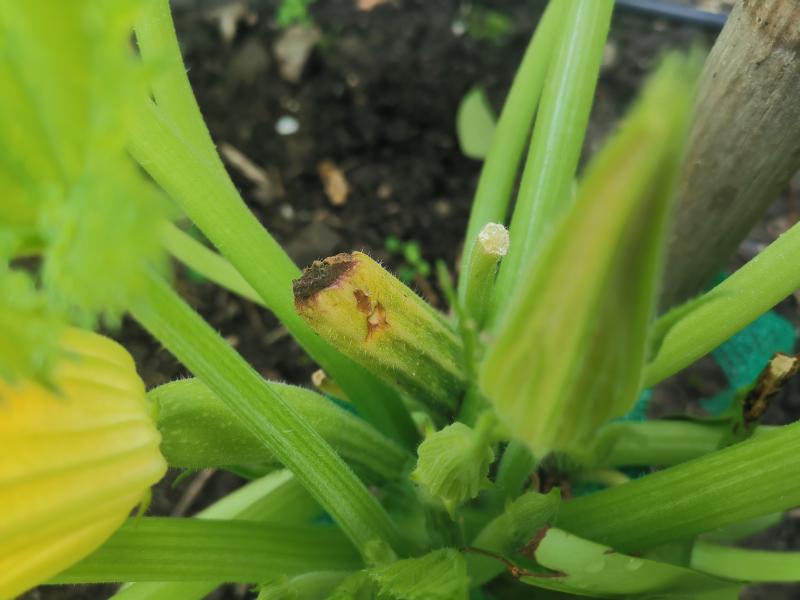 Wie auch in den letzten Jahren fallen mir bei den Zucchini immer wieder Früchte auf, die von der Blütenseite (mit oder ohne dranhängender Blüte) her erst gelb werden und dann langsam weitergammeln. Das Problem hatte ich in einem anderen Thread (https://forum.garten-pur.de/index.php/topic,69287.msg3720965.html#msg3720965) bereits vor ca. 3 Jahren angesprochen. Leider bin ich seither nicht viel schlauer geworden, ob das tatsächlich Blütenendfäule ist und, wenn ja, was ich dagegen unternehmen könnte.