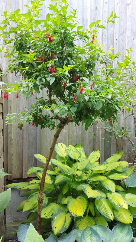 Das dauernde Nass von oben gefällt der Fuchsie ( F. lycioides), so üppig gewachsen ist die noch nie, habe schon zweimal die Triebe gekappt - und Blüten gibt es normalerweise nicht vor Ende Juli. Musste den Topf auf der Nordseite bisher auch so gut wie gar nicht gießen.