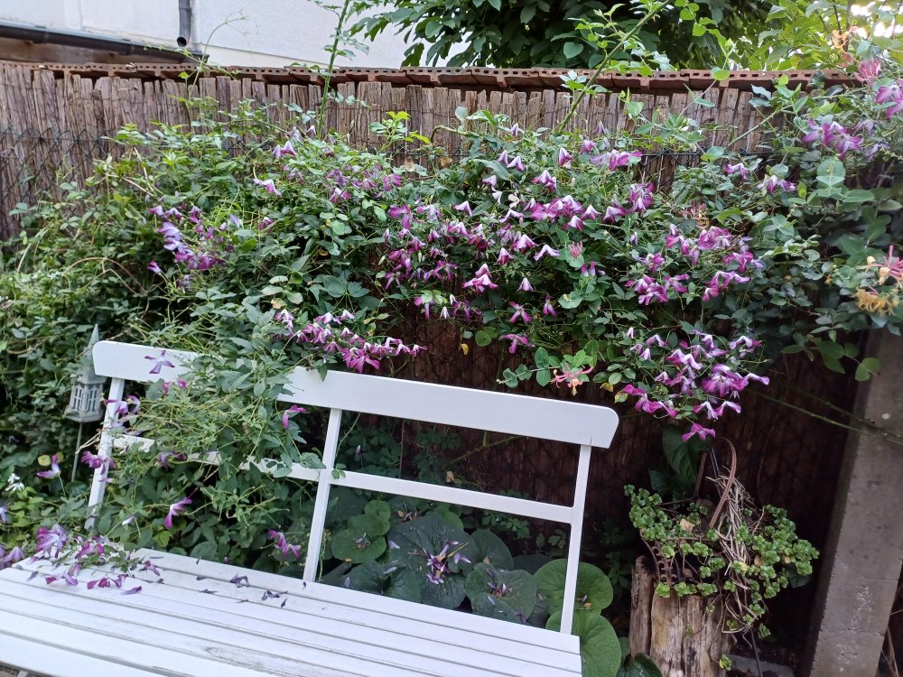 und Odoriba, sie hat zwar sehr kleine Blüten, aber trotzdem ist es insgesamt eine sehr schöne Clematis, die sehr gesund ist, sie füllt jedes Jahr eine enorme Gartenlücke zuverlässig aus