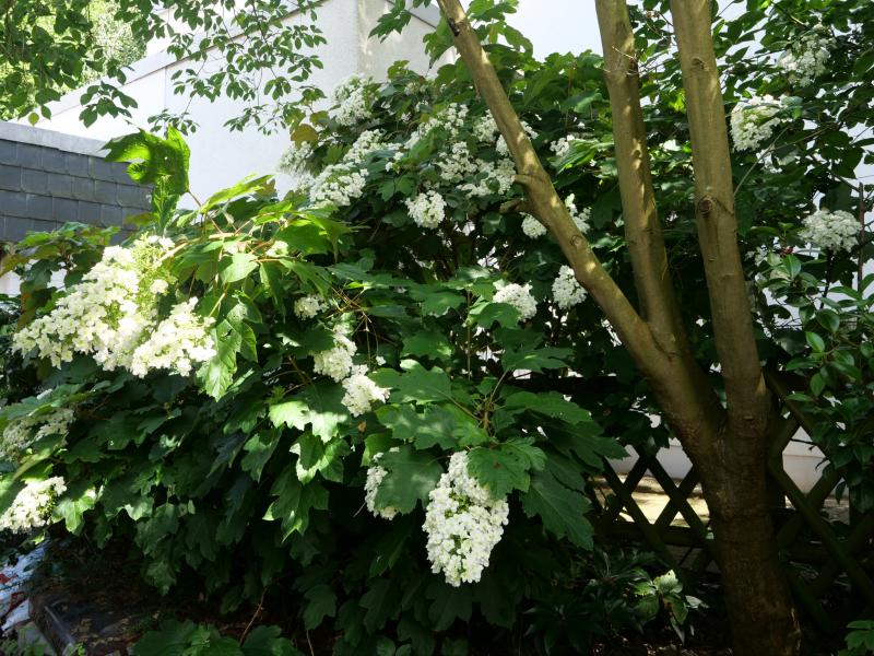Hier ist im Vorgarten seit mehr als 15 Jahren eine Hydrangea quercifolia. Sieht toll aus, ist wunderschön und jetzt ca. 180cm breit und hoch. Die Pflanze ist vom Hausbesitzer damals gesetzt worden,