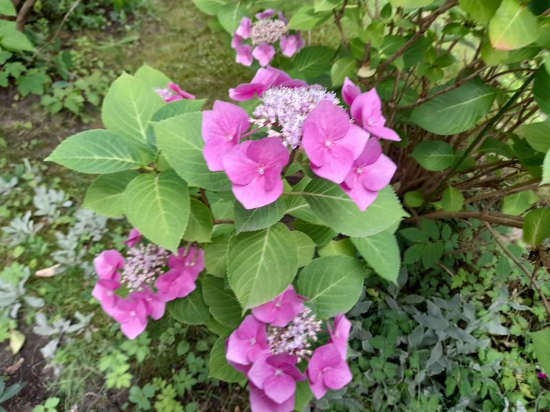 Drei Kolleginnen und ich, wir haben je eine Hortensie bekommen, passend zum Sommerwetter. Zwei waren blau, eine rotweiss, eine rosa. Ich habe gesagt, dass ich die nehme, welche übrig bleibt. ‚Lady Mata Hari Pink‘, ich hab‘s doch fast erwartet. Leider keine Tellerhortensie. Aber sie wird sich farblich einfügen. Pink neben Blau wäre ja nicht so unbedingt das.;)