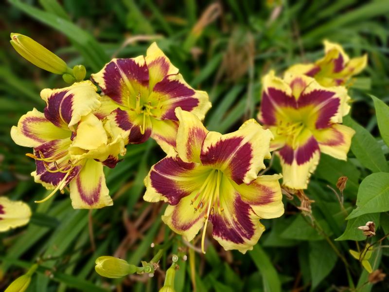 Einige großblütige Sorten gibt es hier auch, hier die letzte, aber erste unversehrte Blüte von 'Humungousaur' (Gossard 2013) Die Schnecken haben einfach alles gemeuchelt in dieser Saison. .
