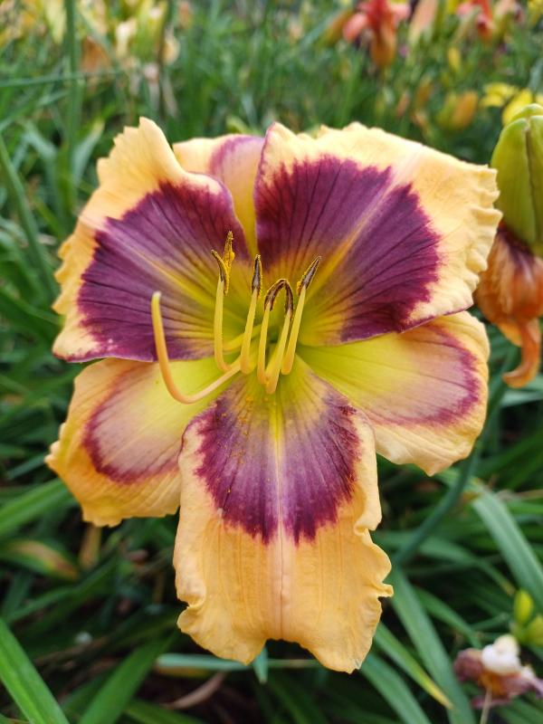 Einige großblütige Sorten gibt es hier auch, hier die letzte, aber erste unversehrte Blüte von 'Humungousaur' (Gossard 2013) Die Schnecken haben einfach alles gemeuchelt in dieser Saison. .