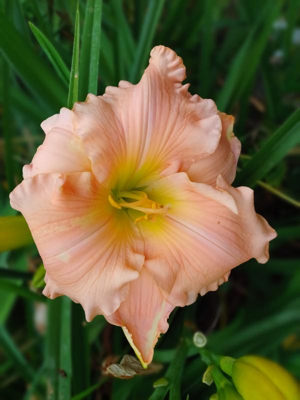 Einige großblütige Sorten gibt es hier auch, hier die letzte, aber erste unversehrte Blüte von 'Humungousaur' (Gossard 2013) Die Schnecken haben einfach alles gemeuchelt in dieser Saison. .